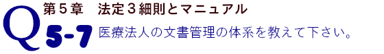 医療法人の文書は、医療法令に基づく定款(施行細則を含む)を頂点に、次のような管理文書(改正等の都度管理をするもの)であるべきで、すべてに文書管理番号が付されることになります。